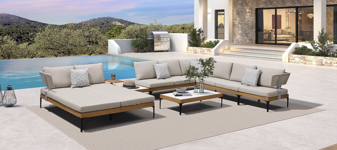 Outdoor Patio Conversation Set with Aluminum Frame, Rope Weave Sofa & Coffee Table with Washable Cushions-SS022-1