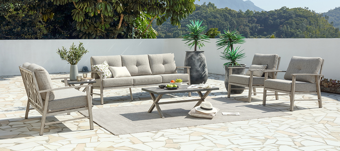 Outdoor Patio Set with Aluminum Frame, Rope Weave Sofa & Coffee Table with Washable Cushions-SS022-2