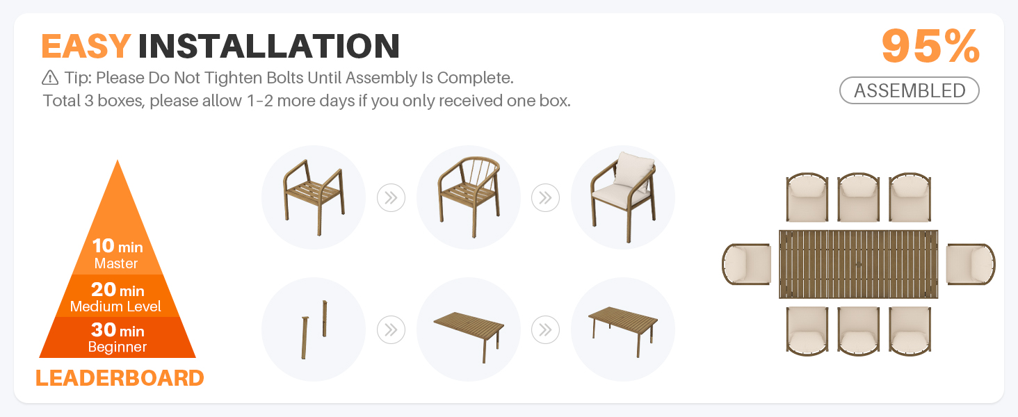 - Generous 9-piece layout, complete accessories & easy assembly