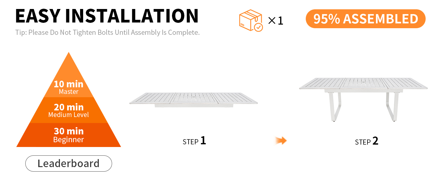 Slatted Tabletop & All-Aluminum Rustproof Frame